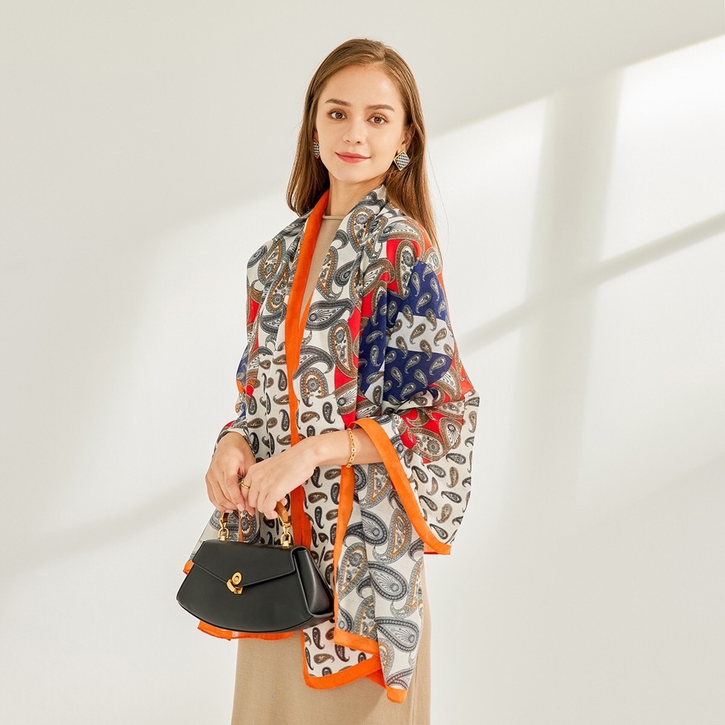 Kích thước khăn lớn, ngoài tạo kiểu giữ ấm còn có thể dùng như áo khoác hay chăn đắp văn phòng.