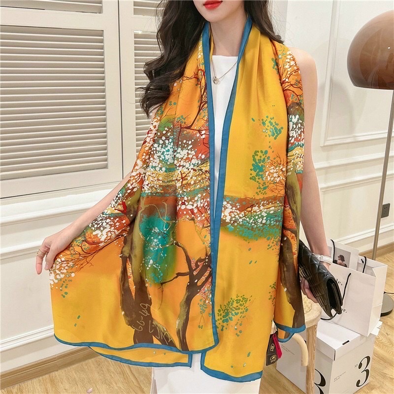 Khăn Choàng Lụa Hàng Châu được làm từ chất liệu lụa tổng hợp, cực kỳ mềm mượt, mát tay, phù hợp với các chị em mọi lứa tuổi. Thiết kế họa tiết hoa mai nhẹ nhàng, trang nhã, mang lại sự trẻ trung cho người dùng. Hoa mai còn tượng trưng cho Tết đến, Xuân về, vì vậy khăn lụa họa tiết hoa mai rất phù hợp để sử dụng.