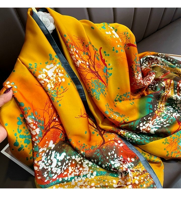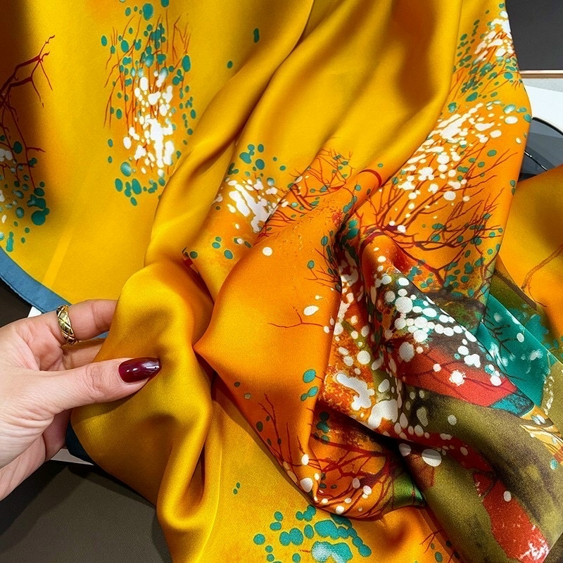 Khăn lụa hoa của Tường Minh Silk được làm từ chất lụa Hàng Châu mềm mượt, mang họa tiết trẻ trung, hiện đại.