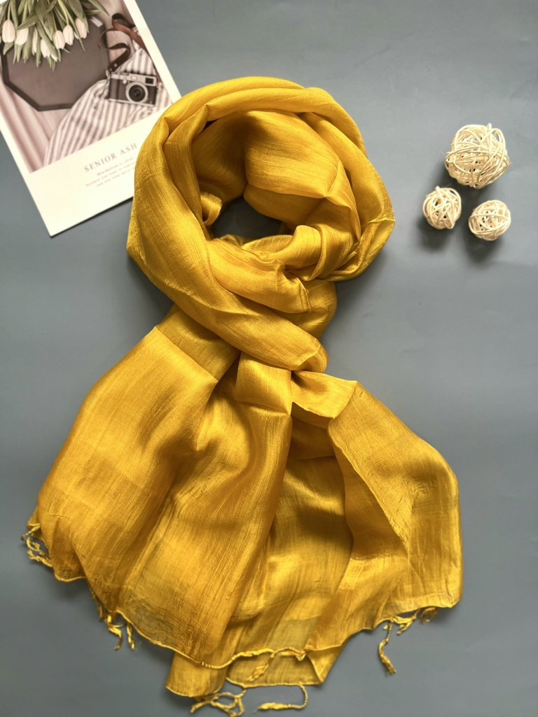 Sự kết hợp giữa tơ dâu tằm và sợi kén vỏ tằm đem đến sự nhẹ nhàng, bay bổng nhưng cũng đủ ấm áp cho những ngày gió lạnh. Tơ tằm được mệnh danh là “làn da thứ 2 của cơ thể con người”.  Mẫu khăn tơ tằm màu trắng thanh lịch, dễ dàng phối đồ, tạo kiểu, nhiều màu sắc phù hợp mọi lứa tuổi.