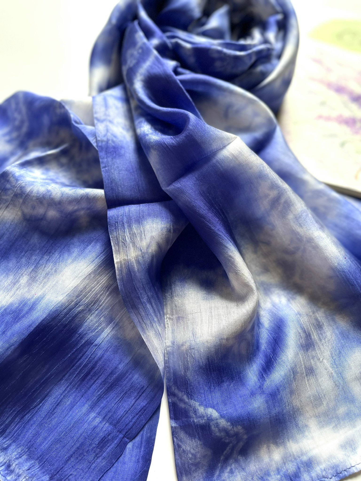 Khác với sự đơn giản, tinh tế của khăn lụa 1 màu, lụa tằm nhuộm loang mang một nét phá cách cực kỳ độc lạ, kết hợp các màu sắc một cách tỉ mỉ, hoà quyện. Không quá sặc sỡ nhưng vẫn đủ để thể hiện cá tính của người đeo. Khăn được dệt từ lụa tơ tằm nên hoàn toàn giữ được những đặc tính cao cấp của lụa: mềm mại, bóng, nhẹ tênh, chỉ cần chạm nhẹ là mê mẩn. Đặc biệt dòng lụa này sẽ đem lại cho bạn cảm giác ấm áp khi diện vào mùa đông và mát mẻ khi mang vào mùa hè.